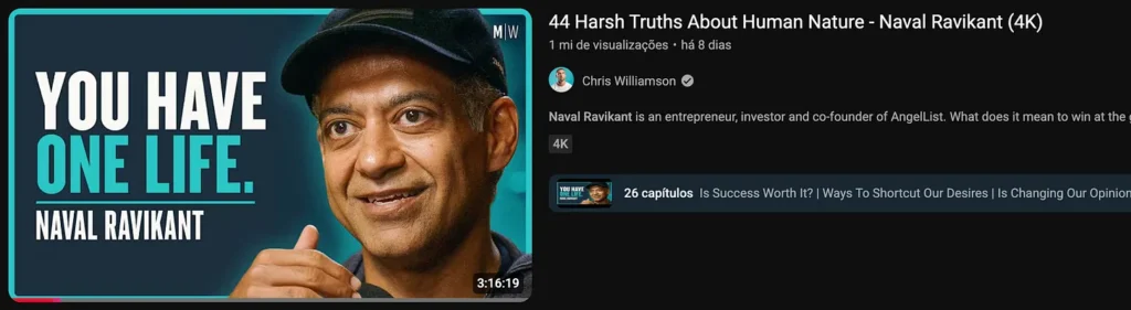 Sem menor dúvidas foi o episódio do Naval Ravikant onde ele fala sobre a natureza humana. Muita profundidade!