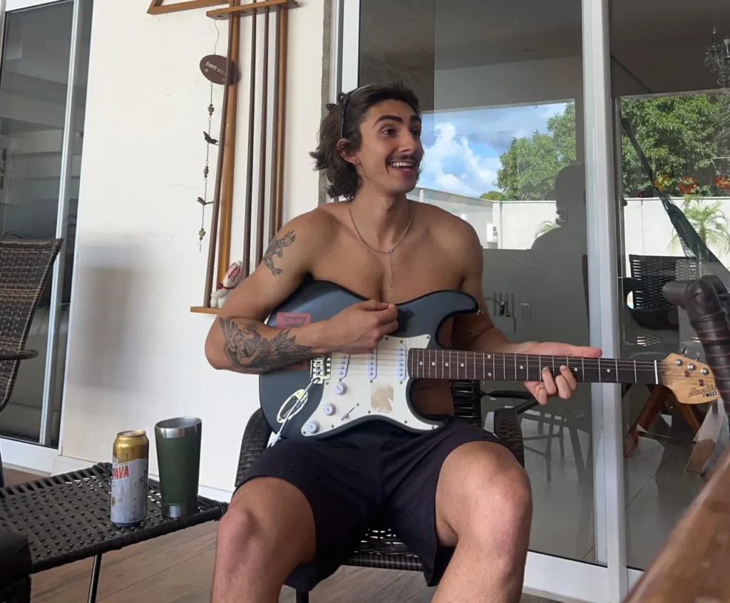 Além de eu ser escritor digital, youtuber e empreendedor, eu tocava guitarra também. (Só uma foto para mostrar como a criatividade sempre fez parte da minha vida.)