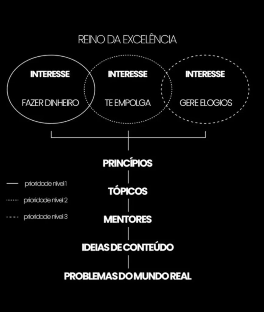 Pegue seus principais interesses. O interesse número um deve ser aquilo que mais te trará lucro na vida. No meu caso: